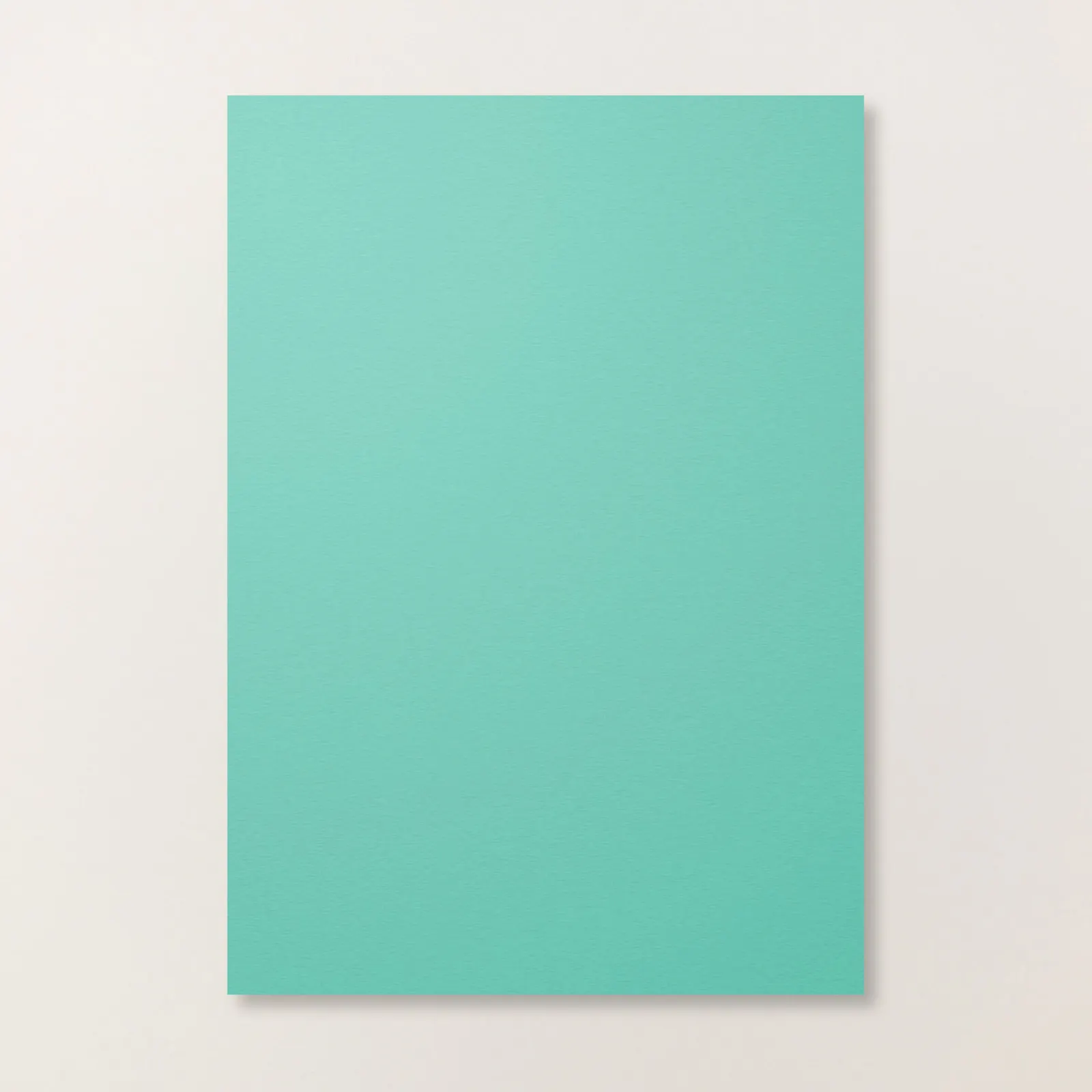 Verwendet habe ich Duo Farbkarton in Calypso, zugeschnitten auf 6". Besonders schön kommt hier der Effekt des Papiers zur Geltung: Ein halb ausgestanzter Kreis wurde in der Hälfte umgeklappt, sodass die zweite Farbseite sichtbar wird und ein spannender Hingucker entsteht.