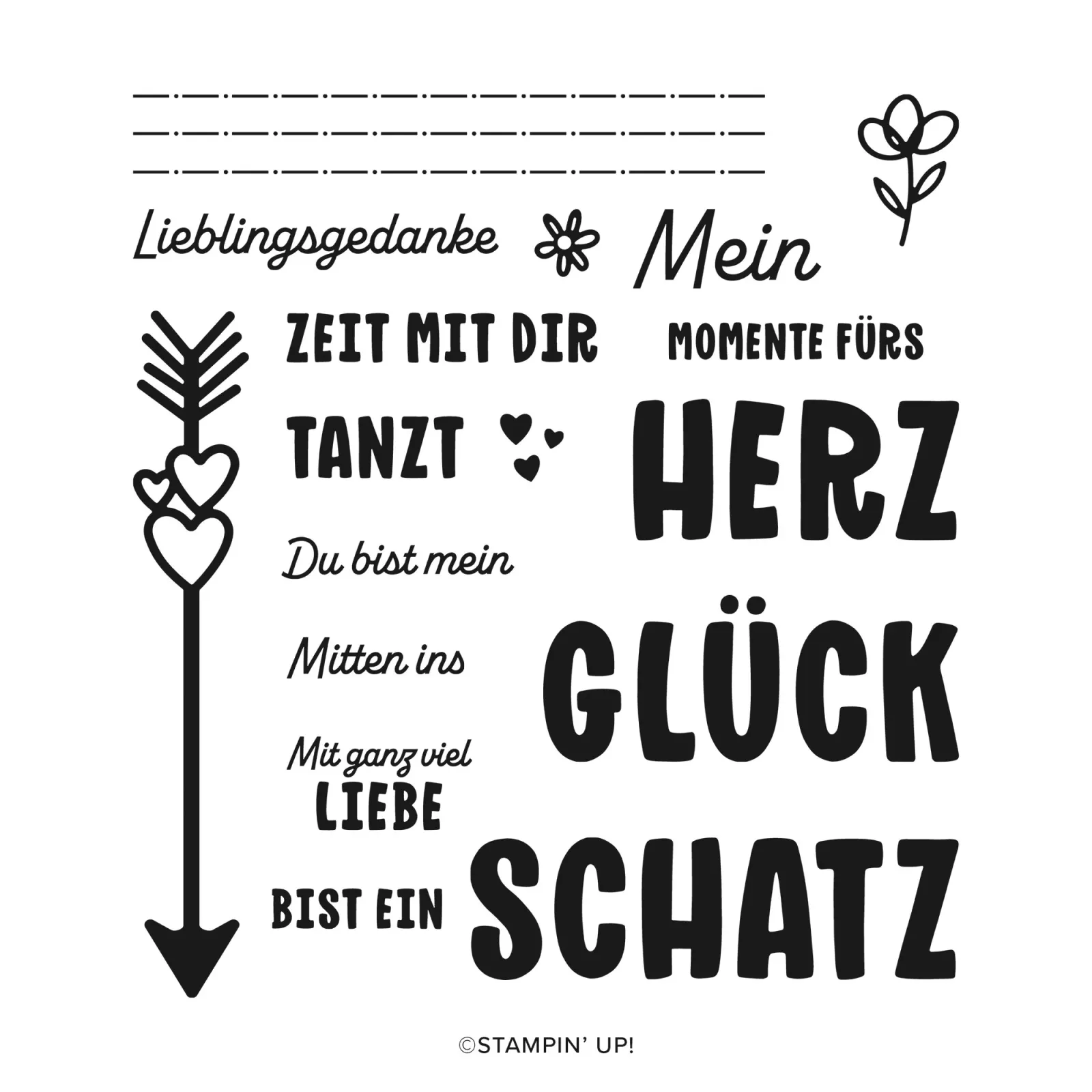 Für die Beschriftung habe ich die Stanzformen Mini Alphabet sowie das Stempelset Liebesgeschichten verwendet. So entsteht eine persönliche Botschaft, die perfekt zum Thema passt und die emotionale Wirkung der Seite unterstreicht.