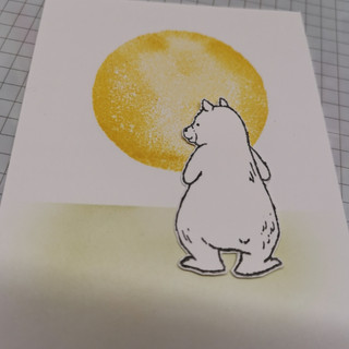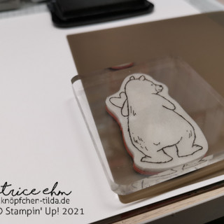 Da sich bei meiner Karte die beiden Bären anschauen, stempel ich jetzt noch einen direkt auf meinen Farbkarton.